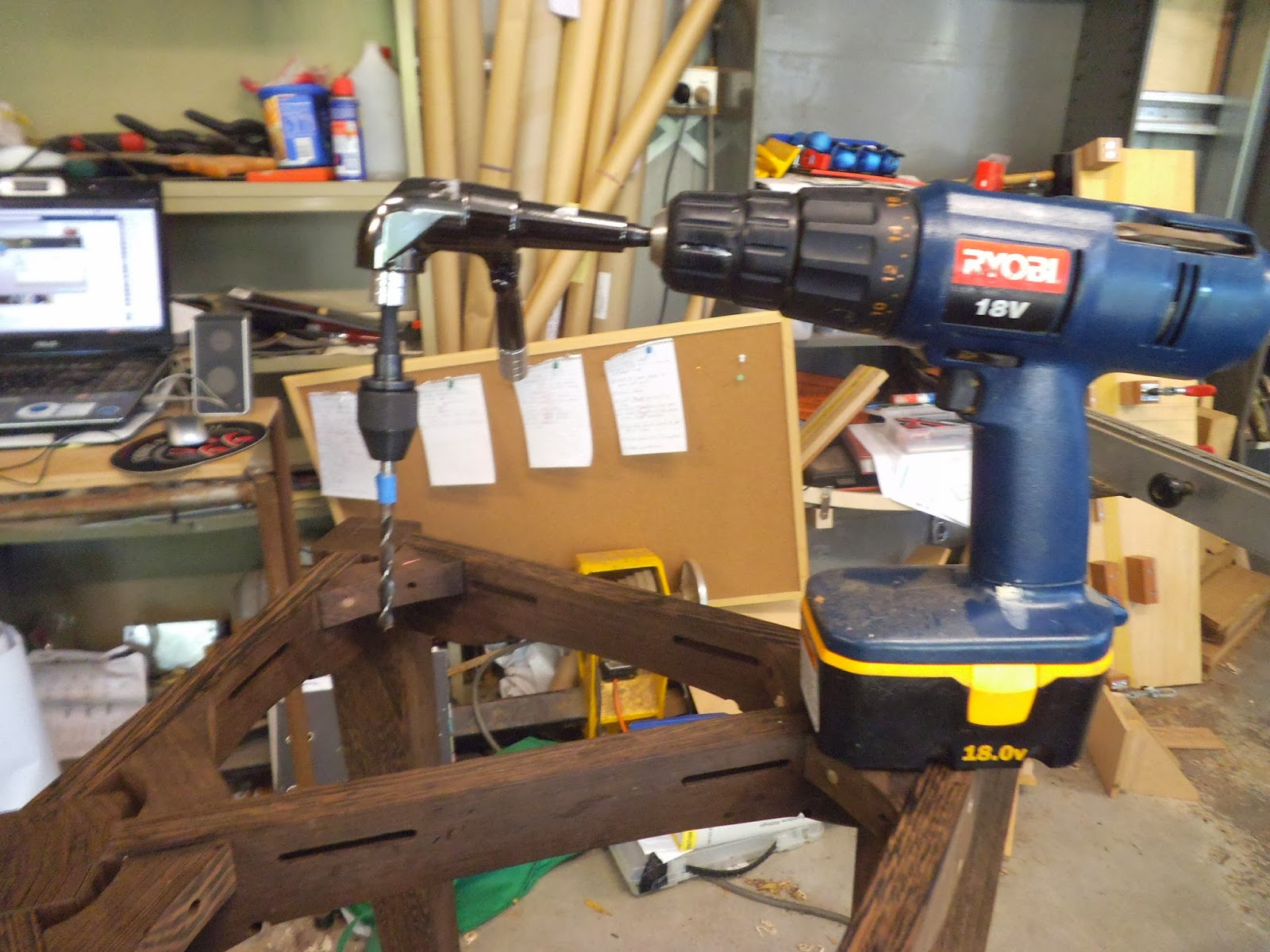 I got these two attachments for my drill that have helped me out heaps in getting into the tight areas to continue the drilling so I can knock in the locking pins. The spaces were too tight so I had to use a horizontal drill attachment to allow me to get into the awkward areas. I also had to by another attachment since the 6mm forstner drill bit did not have a hex attachment.