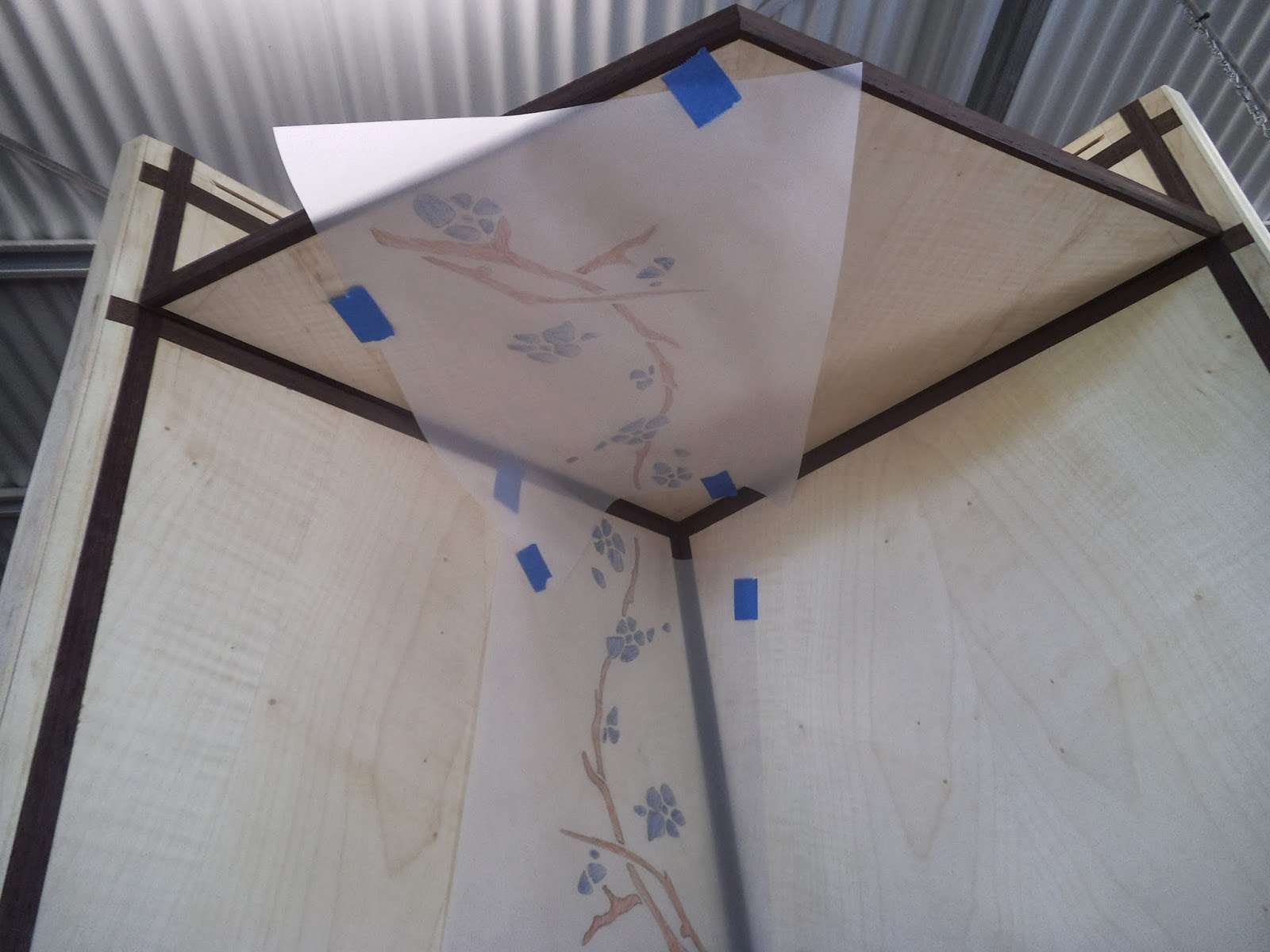 I still layed out the images of the inlay on the doors to get a reference as to where I was putting the stencil onto the life scale drawing layout.